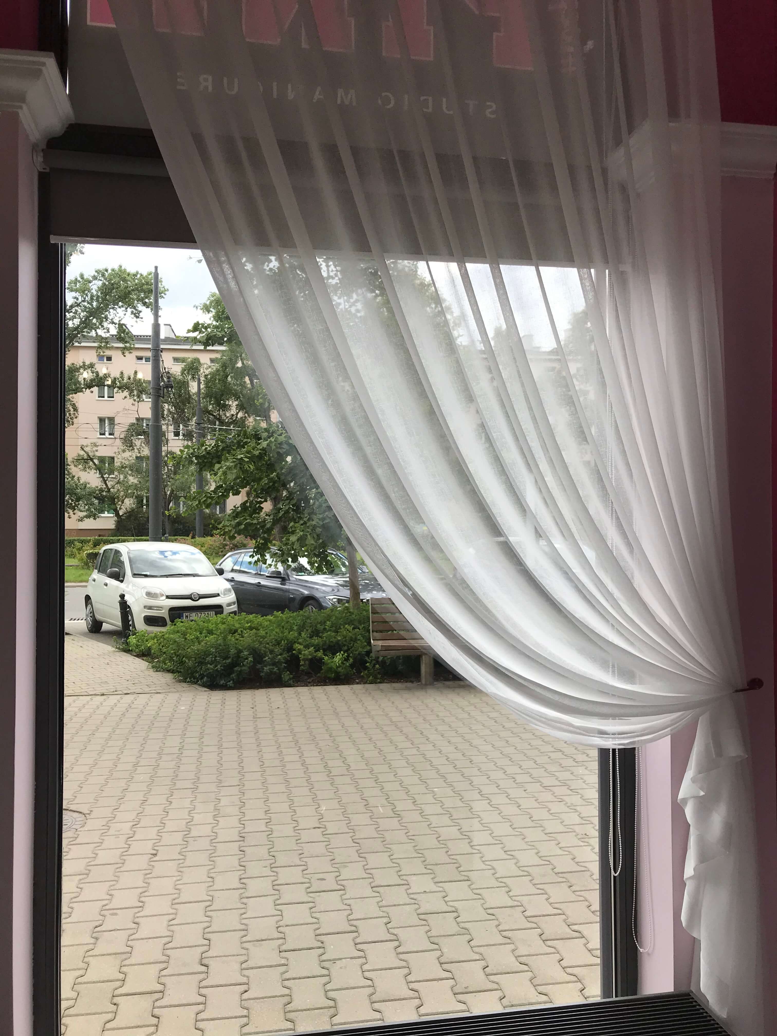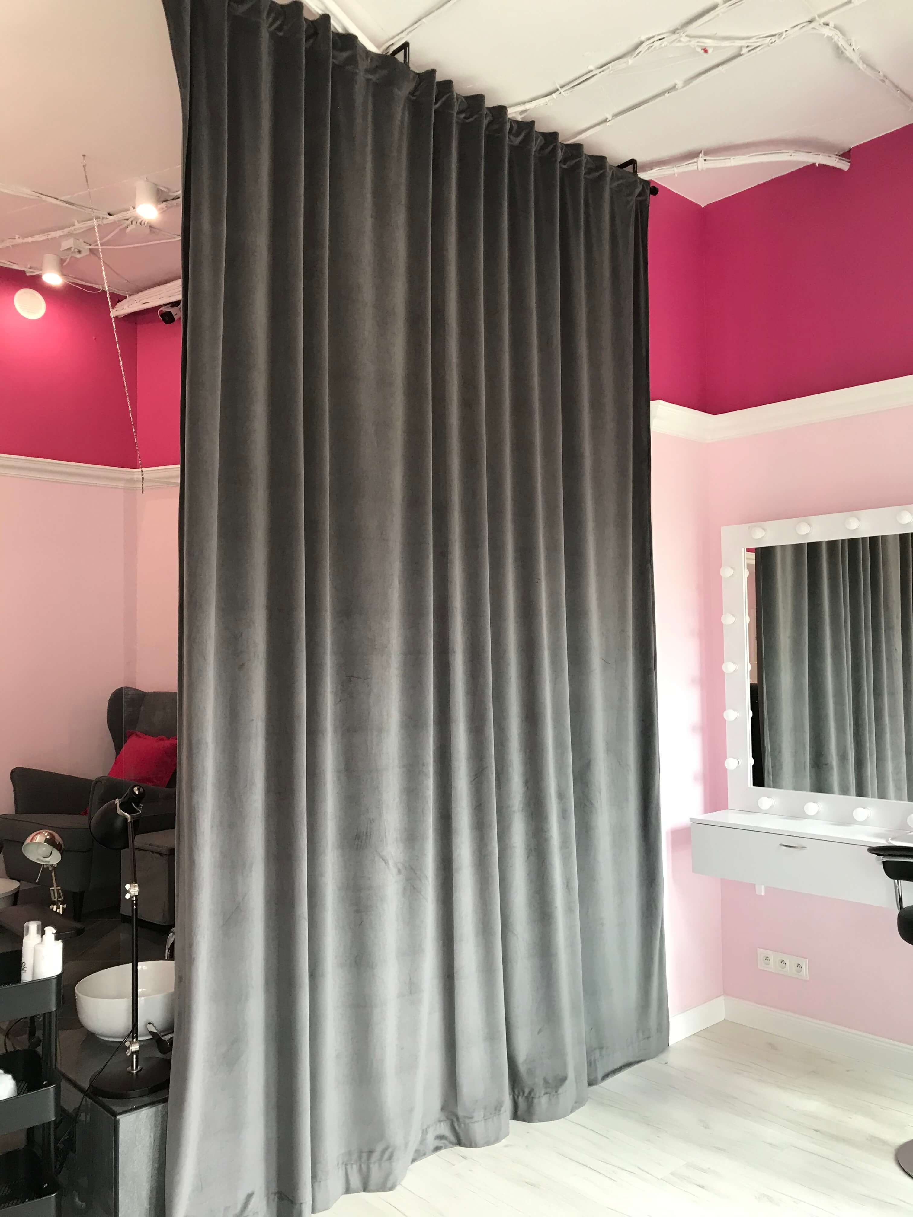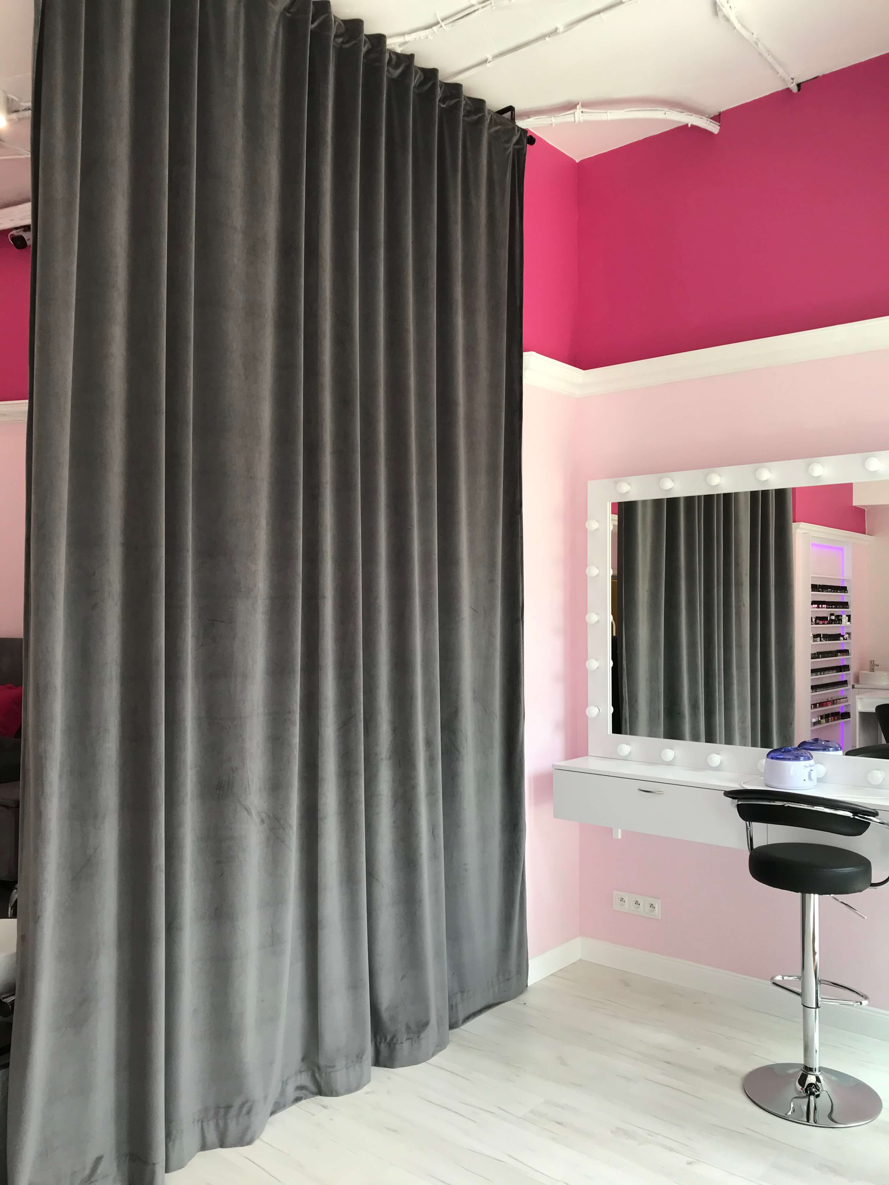 Curtains and drapes for a manicure salon in the very center of Warsaw. It was very important that the curtains and drapes in the salon could be washed. That's why we chose DEKOMA velvet for the gray curtains and decorative pillows. The drapes were made of light white fabric.