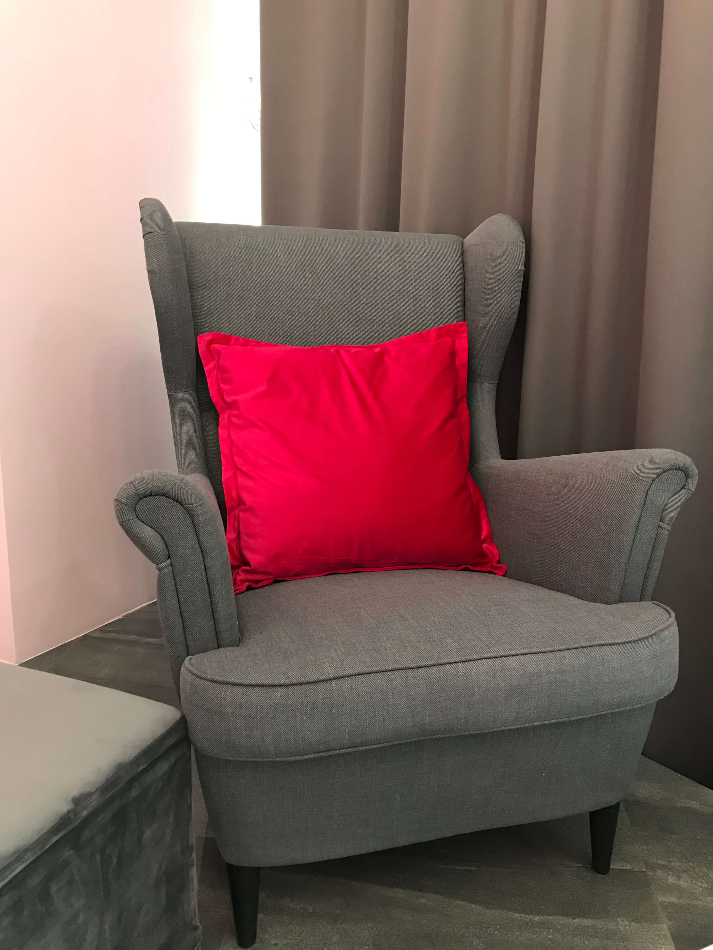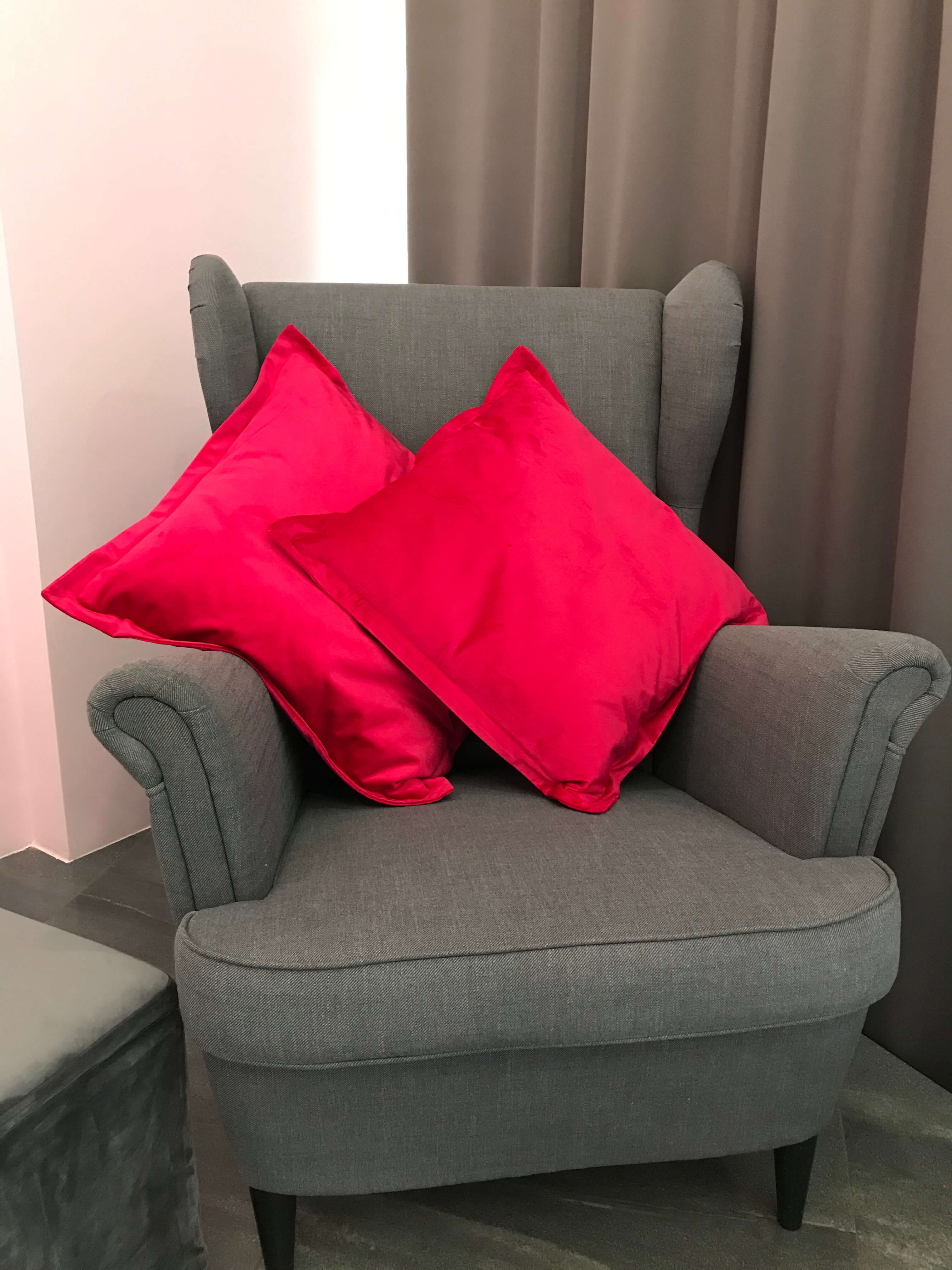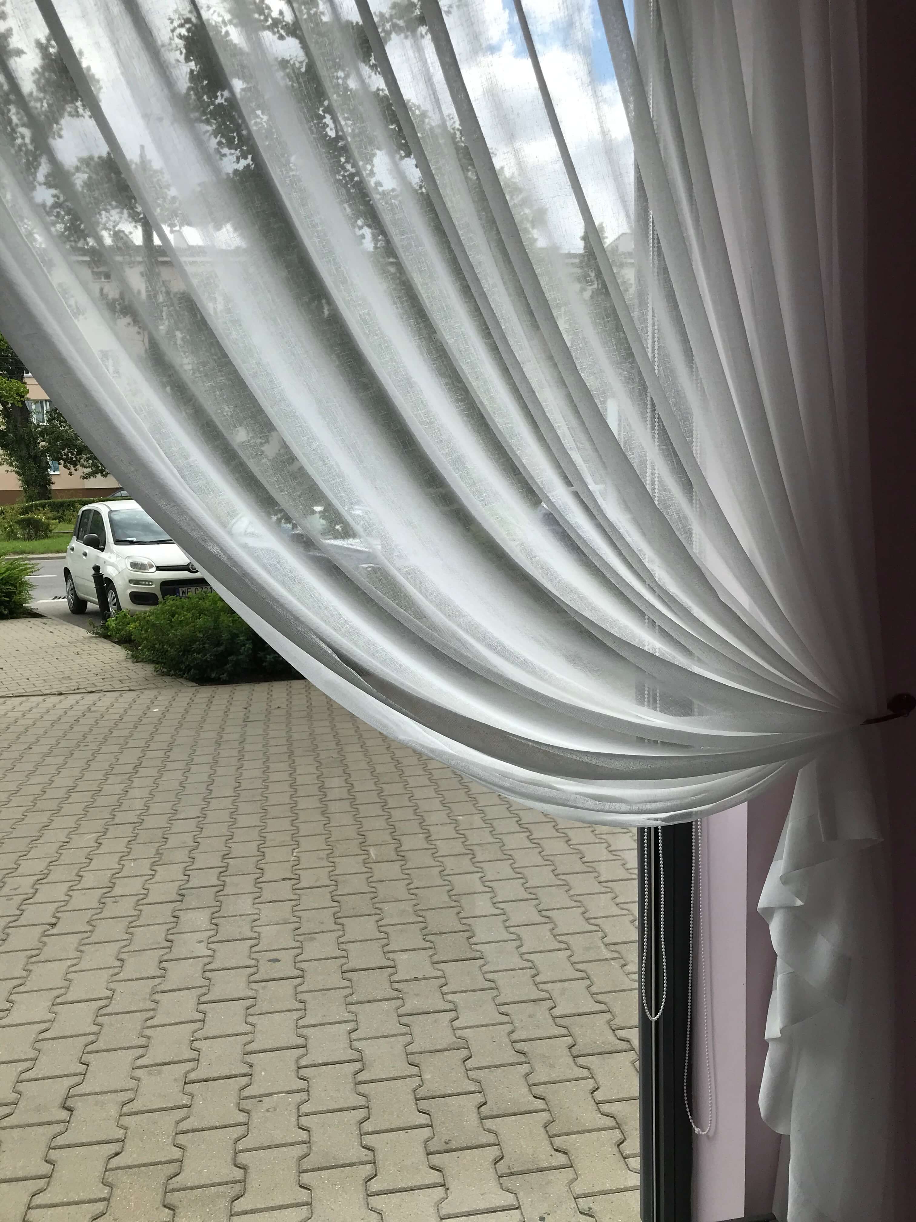 Curtains and drapes for a manicure salon in the very center of Warsaw. It was very important that the curtains and drapes in the salon could be washed. That's why we chose DEKOMA velvet for the gray curtains and decorative pillows. The drapes were made of light white fabric.